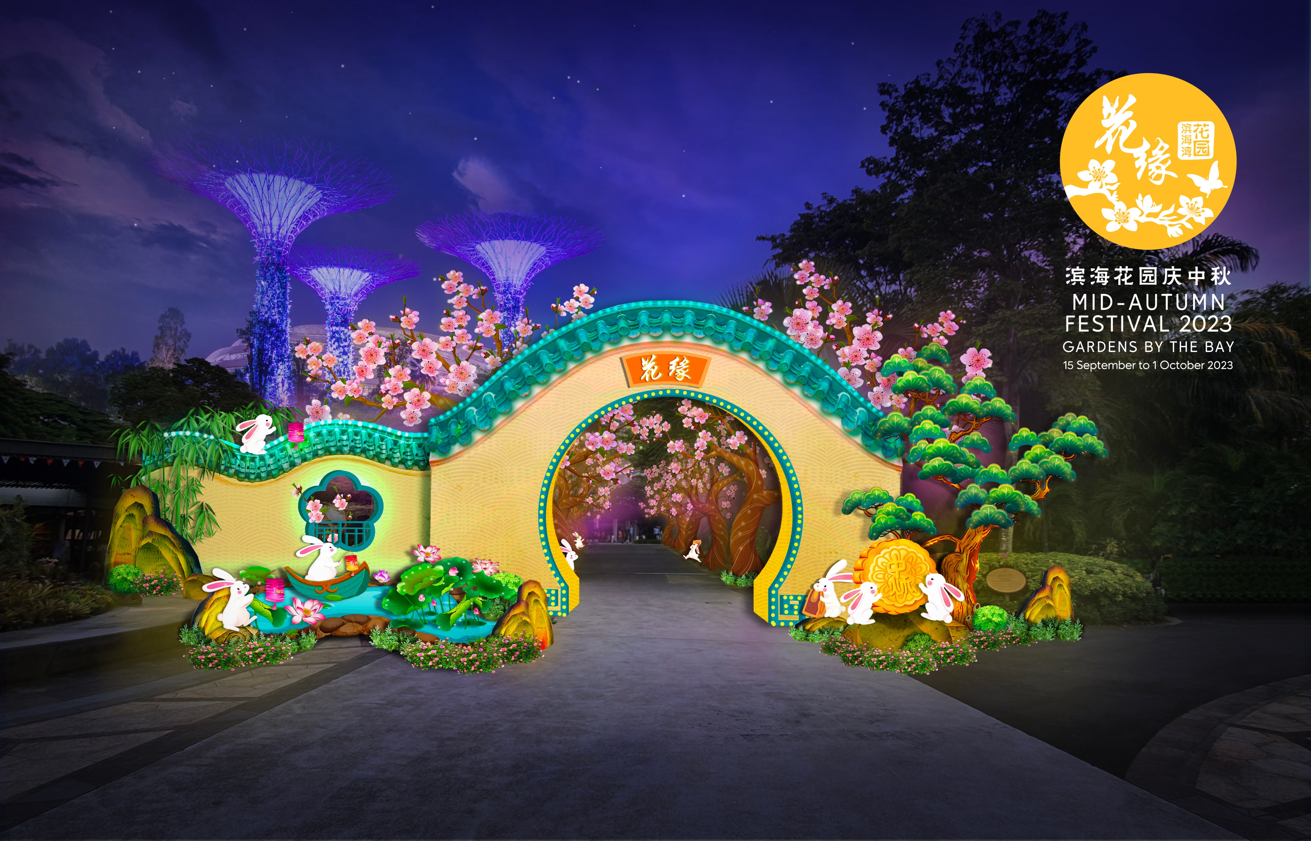 今年的滨海花园庆中秋以“花缘”为主题回归,赞颂人与人之间的深厚情谊和亲友的团圆。色彩缤纷的灯笼照亮了郁郁葱葱的花园,其灵感源自中国神话、传说和文化。参与者可在活动中体验多样的文化表演和活动,并通过充满乐趣的嘉年华游戏和各种美味的街头美食与亲友共度美好时光。