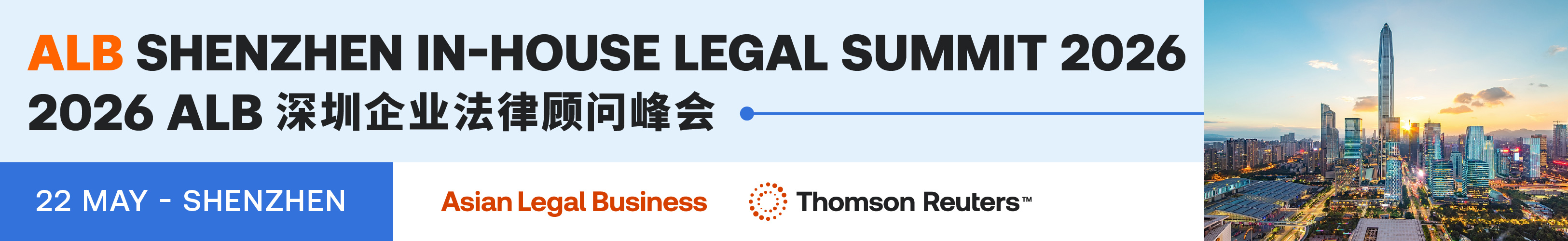 Asian Legal Business invites you to save the date for the 11st ALB Shenzhen In-House Legal Summit taking place on 22 May 2026. This annual summit will feature inspiring keynote speeches, panel discussions, interactive workshops, and networking opportunities. It will continue to gather senior-level corporate counsels, business leaders and private practitioners from the Guangdong-Hong Kong-Macao Greater Bay Area.