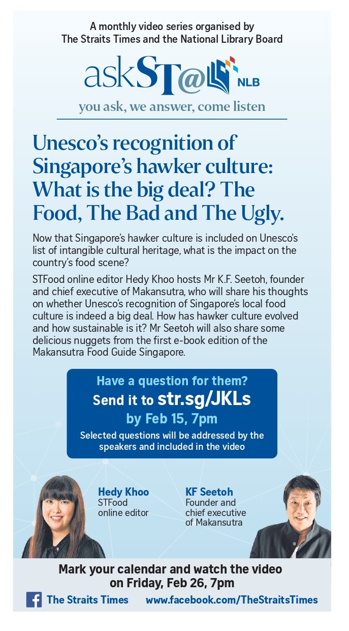 AskST@NLB: Unesco's recognition of Singapore's hawker culture: What is the big deal? The Food, The Bad and The Ugly