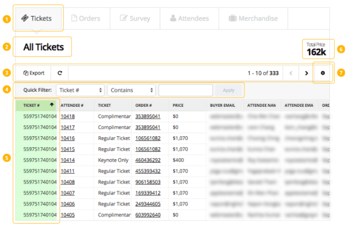 As we’ve mentioned before, the participation fee is usually one of the key sources of event revenue. Keep all payments in one place, where you can filter them by ticket types, payment methods, statuses, and names. For events that offer different access categories, it’s especially important to have a robust system for finance management. Here’s an example of a comprehensive payment report that you can easily configure and export: