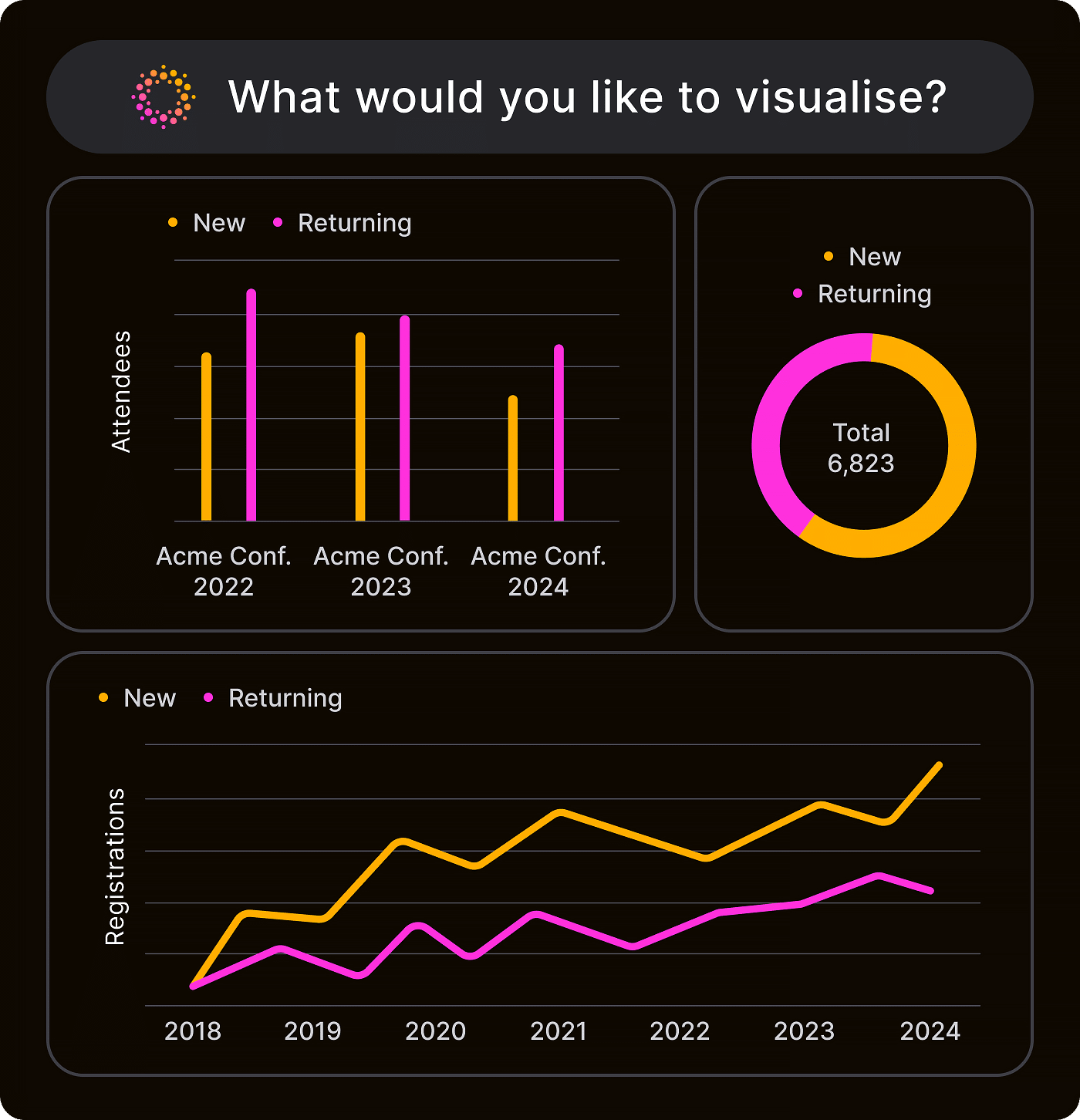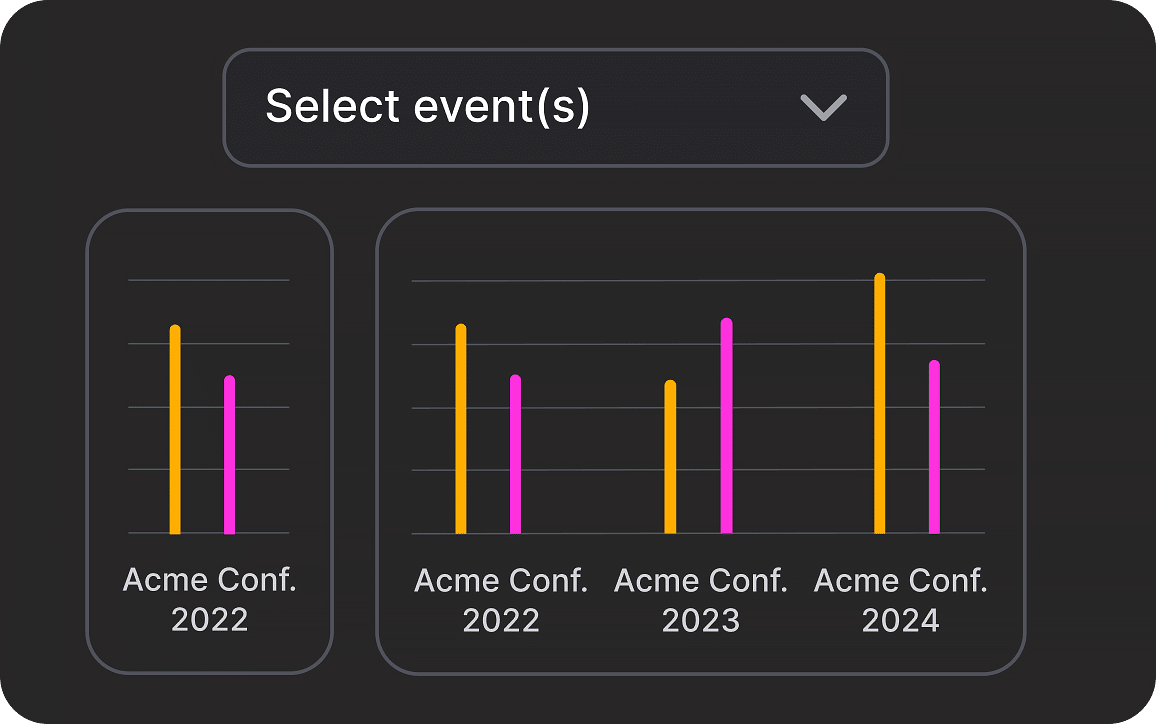 - During the event: monitor check-ins, live attendance breakdowns, or survey responses in real time.