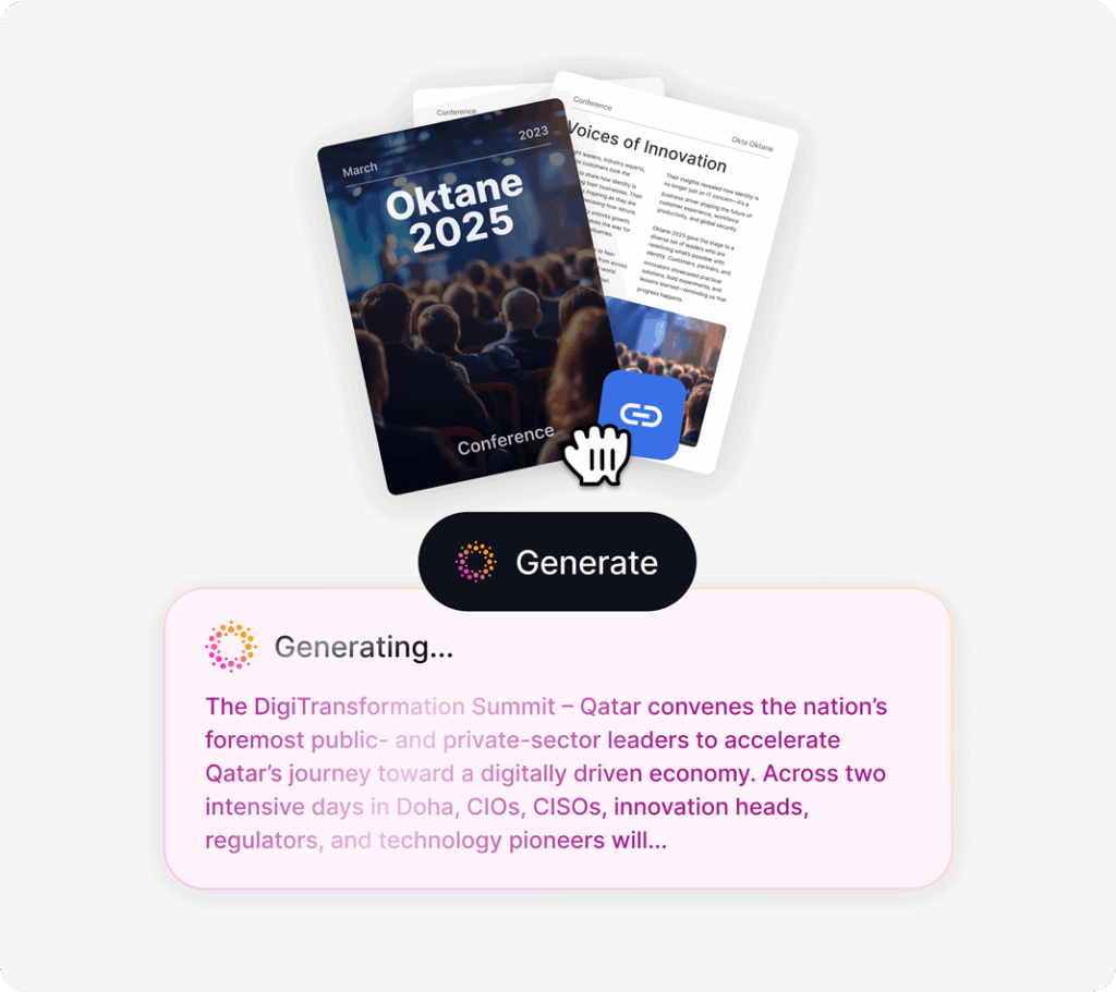Turn brochures, speaker info, and raw content into ready-to-publish event programs in seconds.