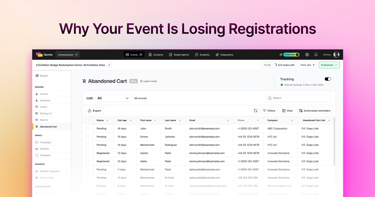 Registration abandonment is one of those things everyone knows happens, but few teams actually measure. Someone clicks your link, starts registering, gets distracted, closes the tab and that's the last you hear from them. No follow-up, no second chance. Just a lost attendee.