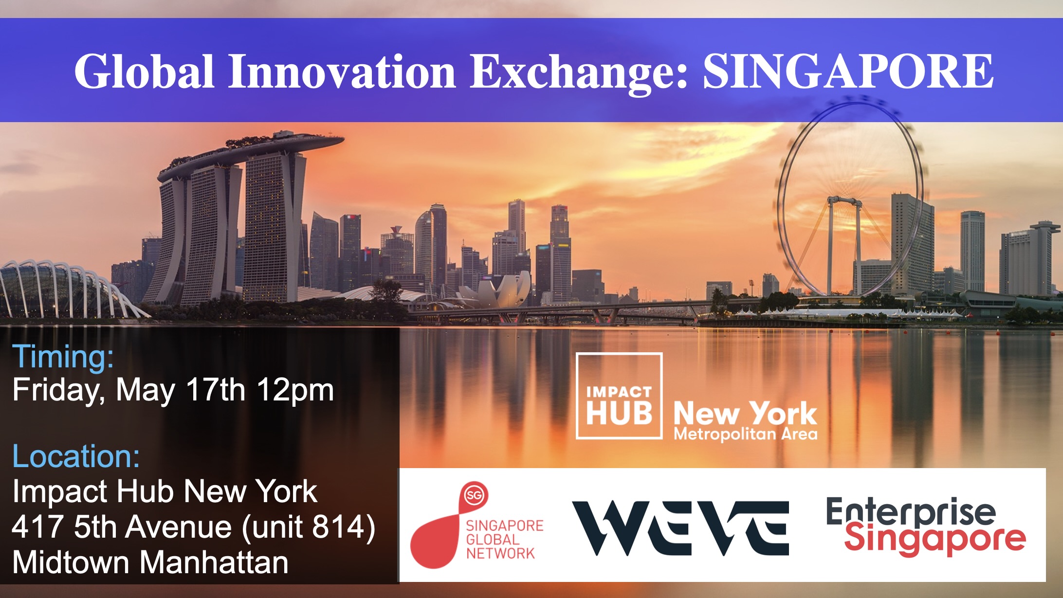 Impact Hub New York Metropolitan Area, in partnership with Singapore Global Network, is excited to invite you to “Global Innovation Exchange - Singapore.” Singapore is one of the most economically advanced countries in the world with a rising and vibrant innovation ecosystem. This event creates a platform for those interested in engaging Singapore’s ecosystem, to learn about pathways and opportunities to do so.