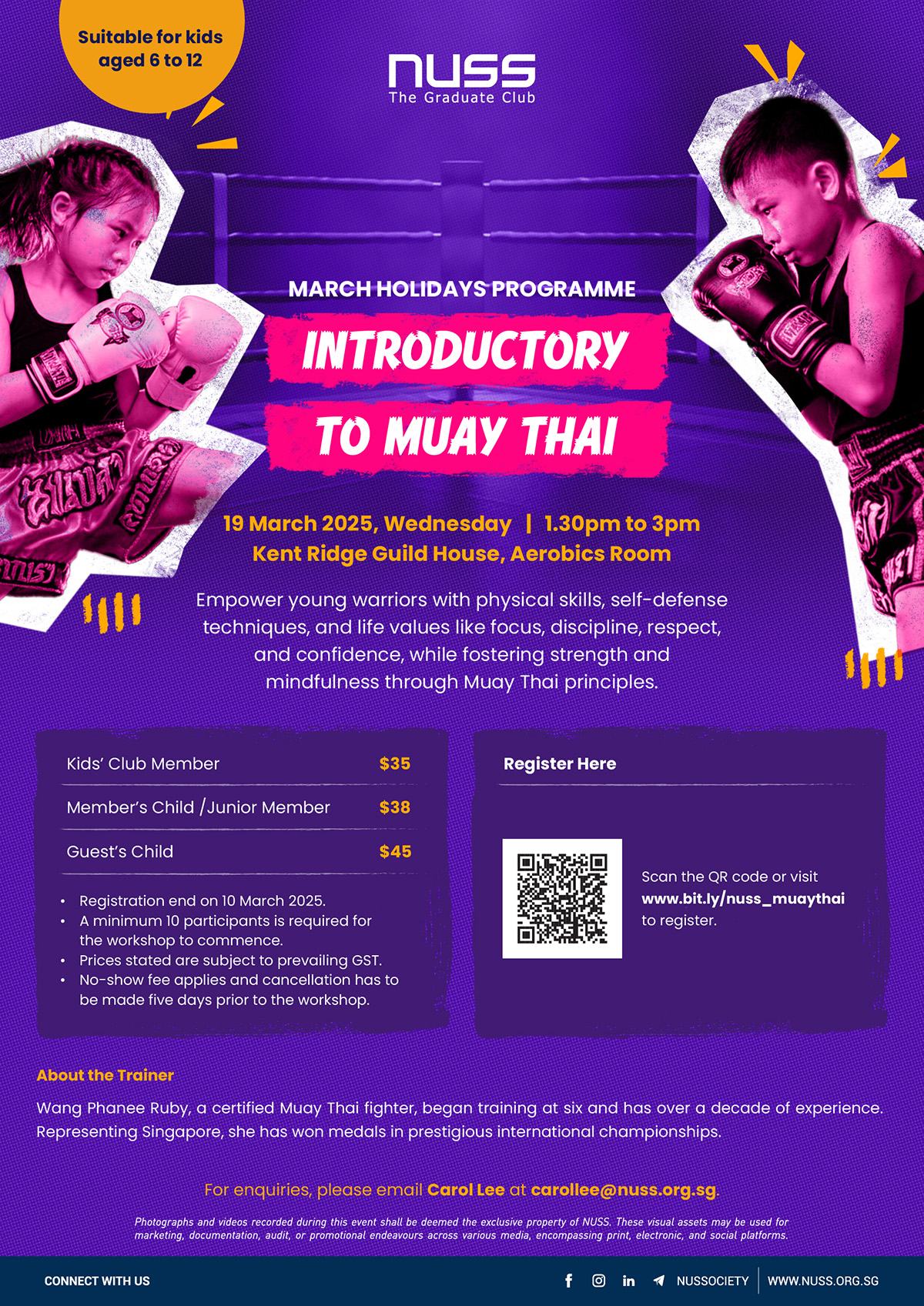 Please note that the workshops are strictly for NUSS members and members' guests.