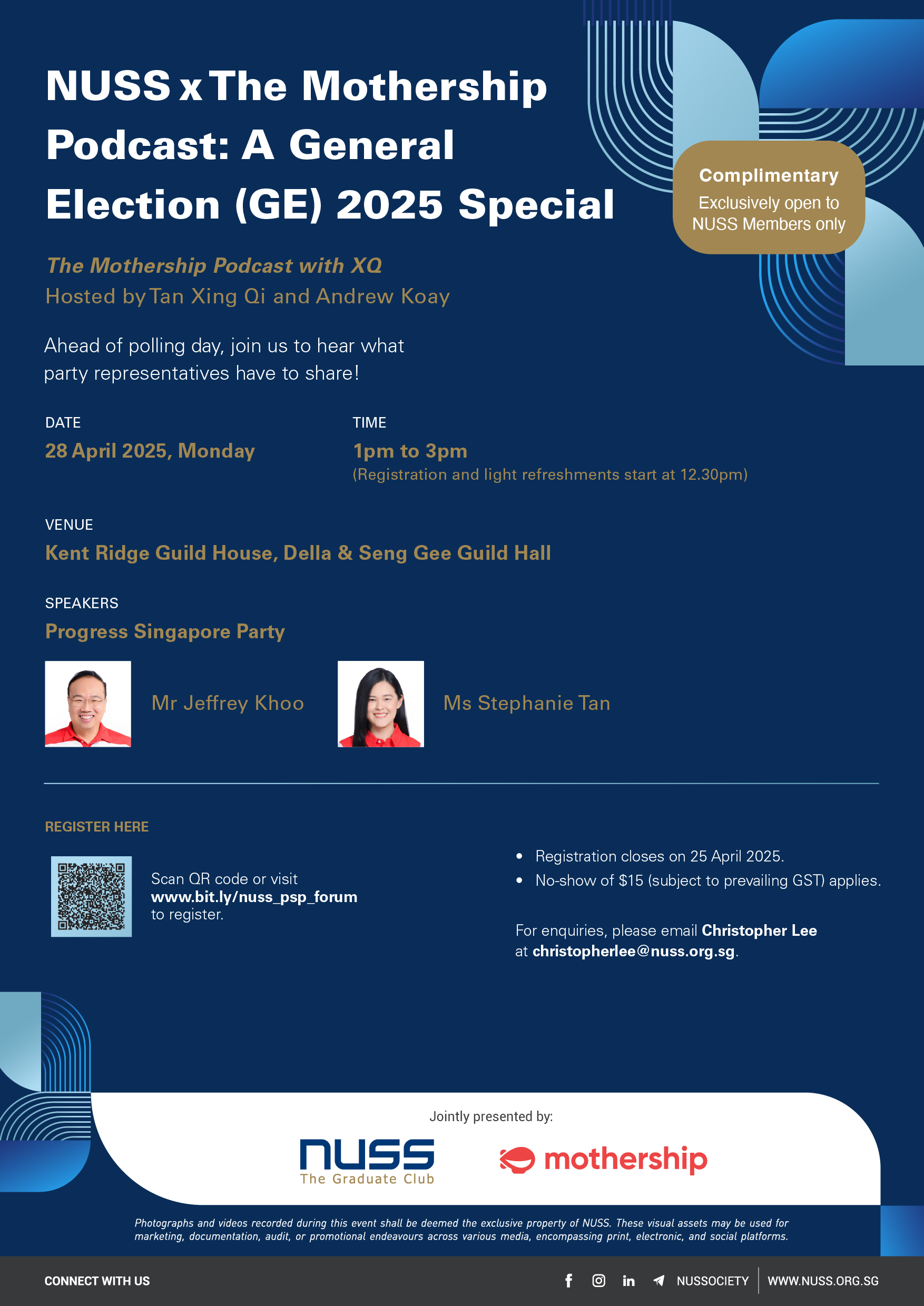 NUSS x The Mothership Podcast: A General Election (GE) 2025 Special.- The Mothership Podcast hosted by Tan Xing Qi and Andrew Koay with Guests from Progress Singapore Party