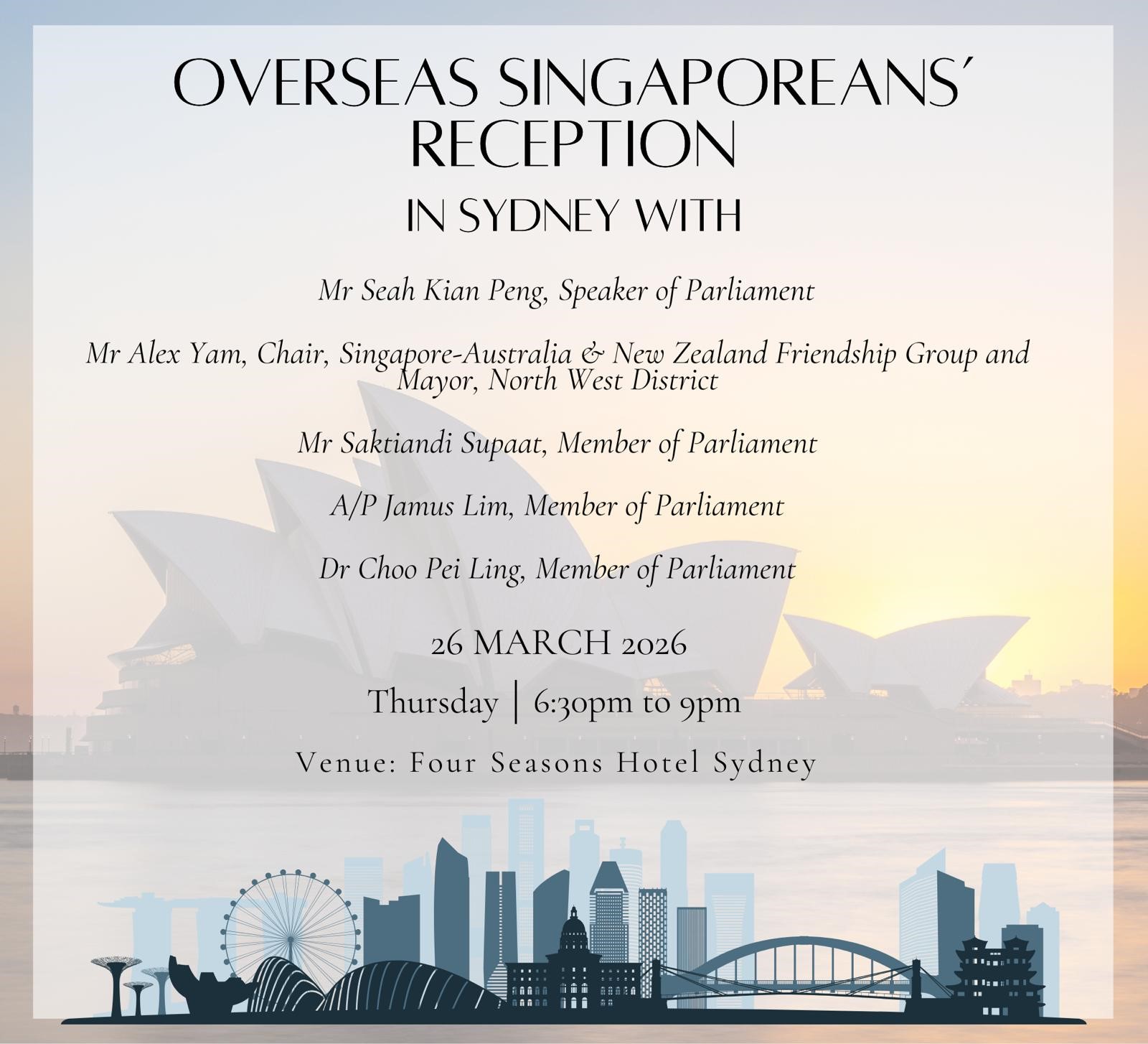 The Singapore High Commission in Canberra and the Singapore Global Network are delighted to invite you to a special Evening Reception in Sydney.